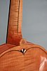 Vue de dos : Fait en merisier frisé, le manche en lui aussi en merisier frisé et incrusté de palissandre