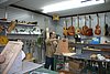 Vous pouvez voir ici différents outils de travail de l'artiste : alasoir, gouje, wastrigue, poite à âme, petit rabot